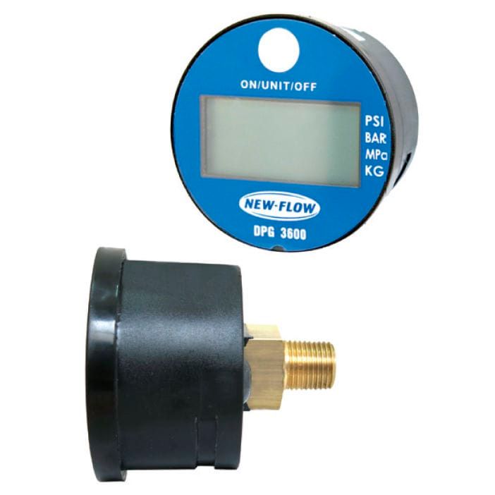 ¼” NPT Rear connection in Brass. User friendly digital display with a 1-year continuous use battery life. Measures up to 150psi, can show Bar, Mpa and kg/cm2 units.